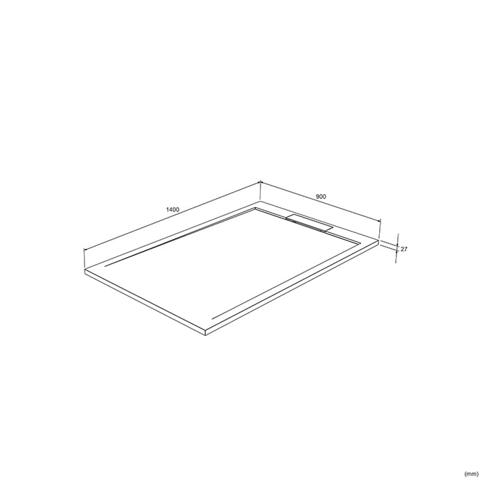 Ce receveur de douche mesure 90 cm de large et 140 cm de long.