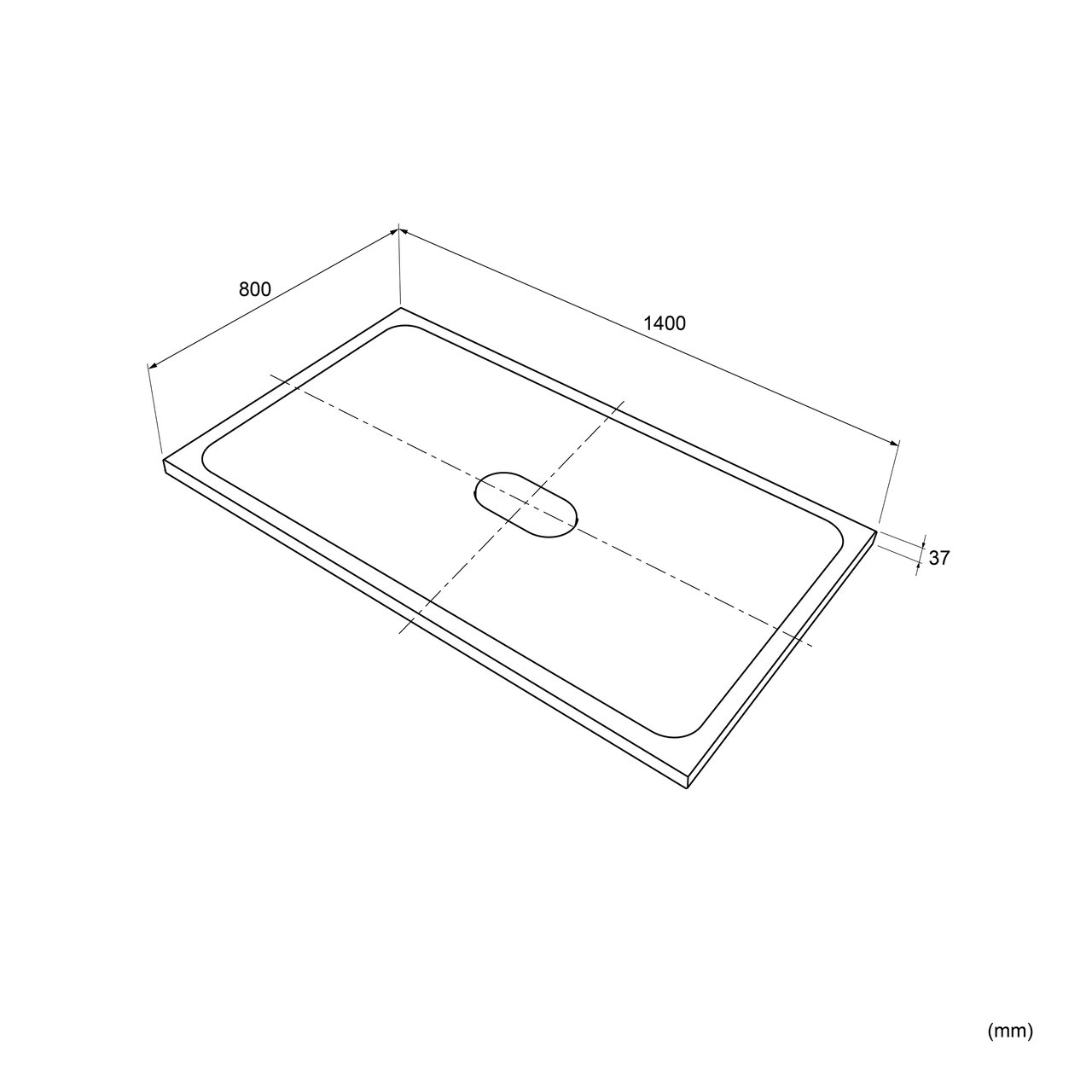 Ce receveur de douche mesure 80 cm de large et 140 cm de long.