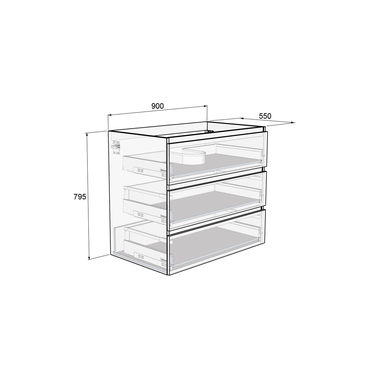 Type de tiroir | Tiroir en métal noir Hettich à parois droites | |