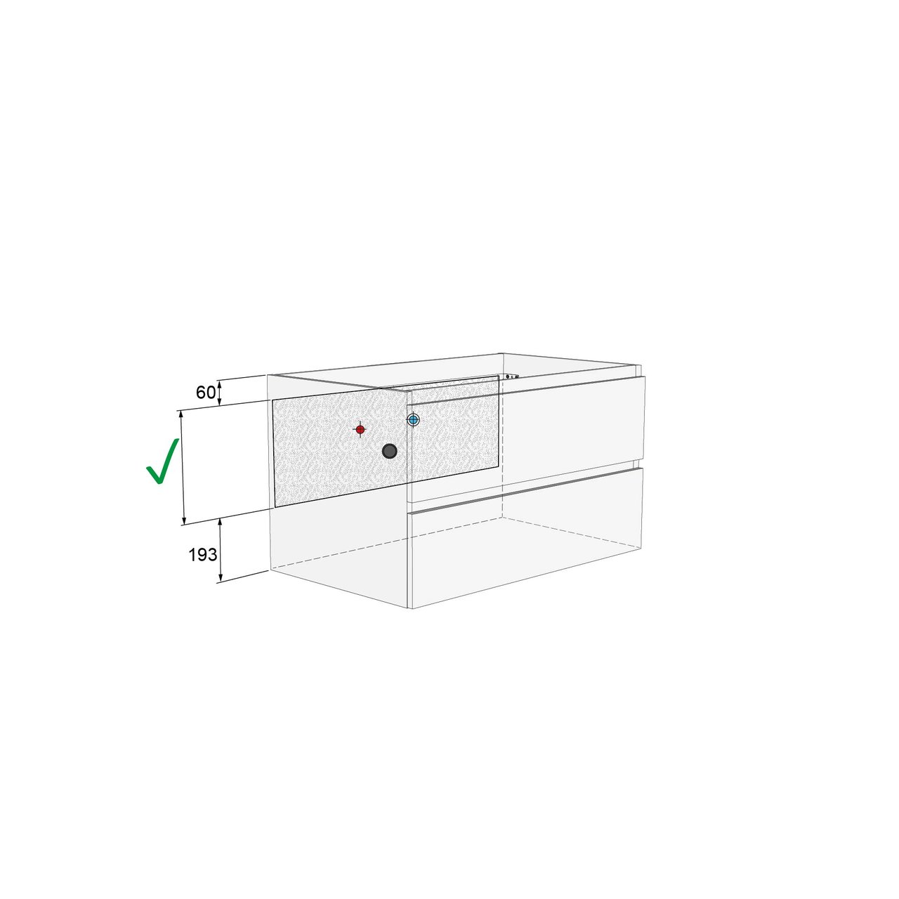 Ce meuble sous-vasque en mélamine avec deux tiroirs de qualité supérieure a une largeur de 90 cm, une hauteur de 52 cm et une profondeur de 55 cm. Grâce à sa finition épurée, cette armoire suspendue en chêne brut s'intègrera dans n'importe quelle salle de bains.