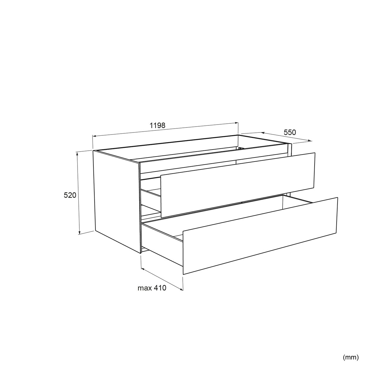 Ce meuble sous-vasque en placage de qualité supérieure avec 2 tiroirs possède une largeur de 120 cm, une hauteur de 52 cm et une profondeur de 55 cm. Grâce à sa finition épurée, cette armoire suspendue en chêne naturel s'intègrera dans n'importe quelle salle de bains.