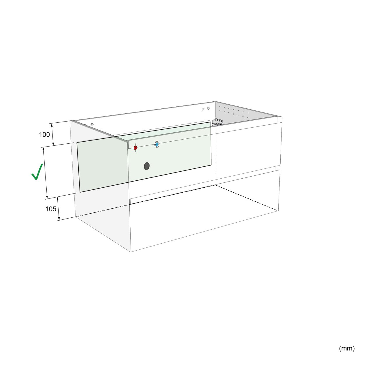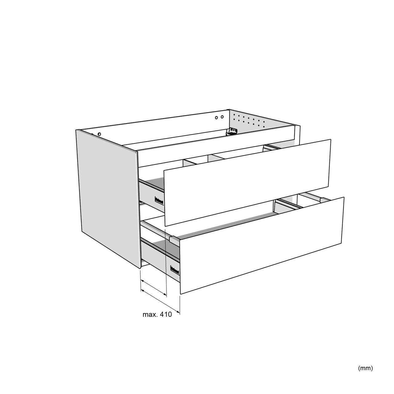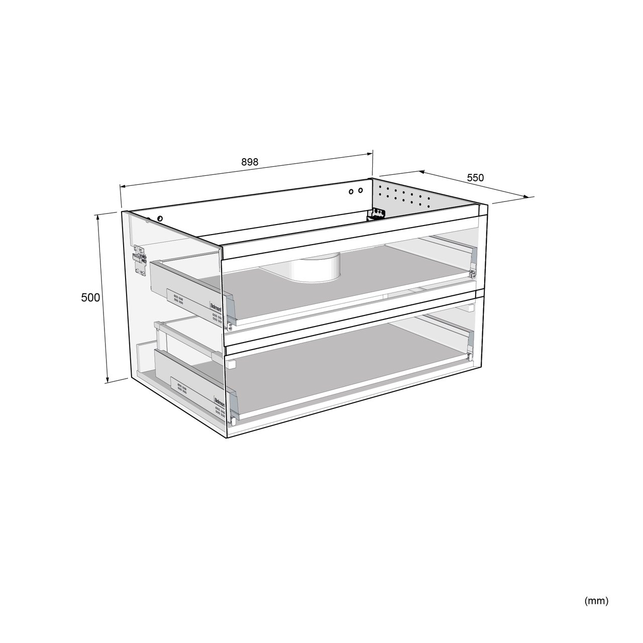 Type de tiroir | Tiroir en métal noir Hettich à parois droites | |