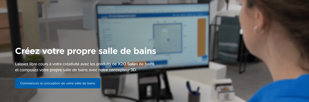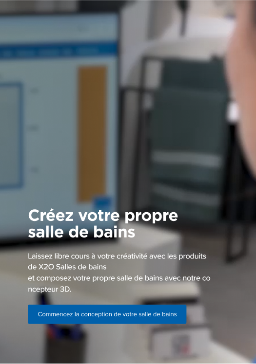 Configurez votre espace salle de bains, glissez vos produits X2O préférés, visualisez votre salle de bains en 3D et enregistrez-la en image.