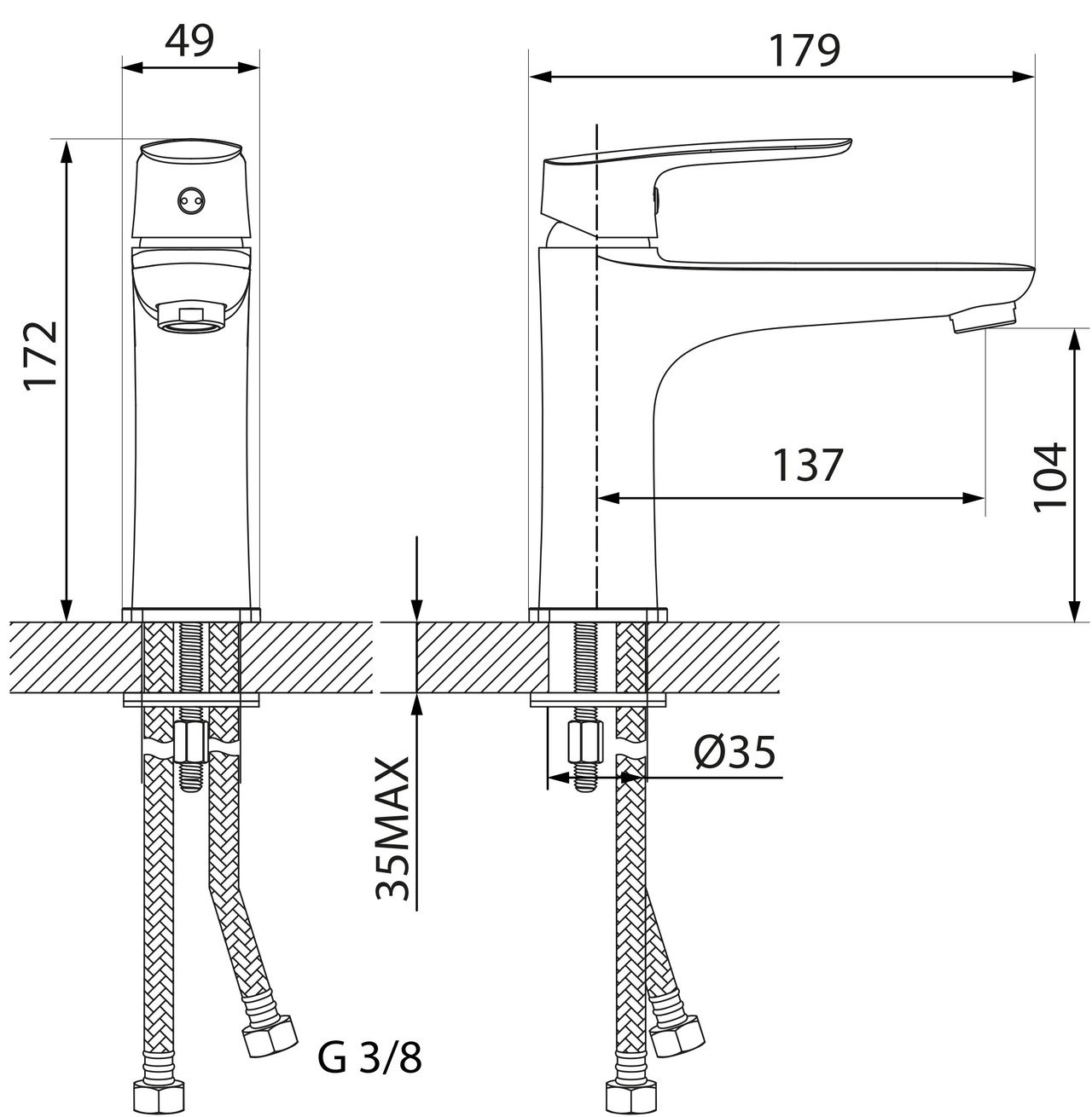 Épaisseur de tablette max. pour l'installation du robinet | 35 mm | |
