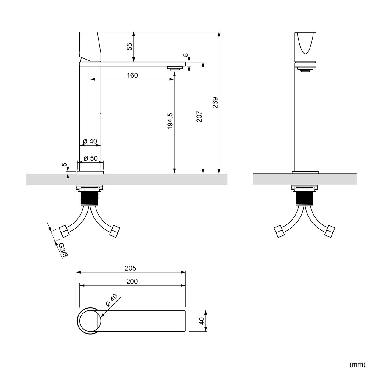 Épaisseur de tablette max. pour l'installation du robinet | 30 mm | |
