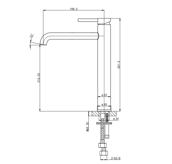 Épaisseur de tablette max. pour l'installation du robinet | 35 mm | |