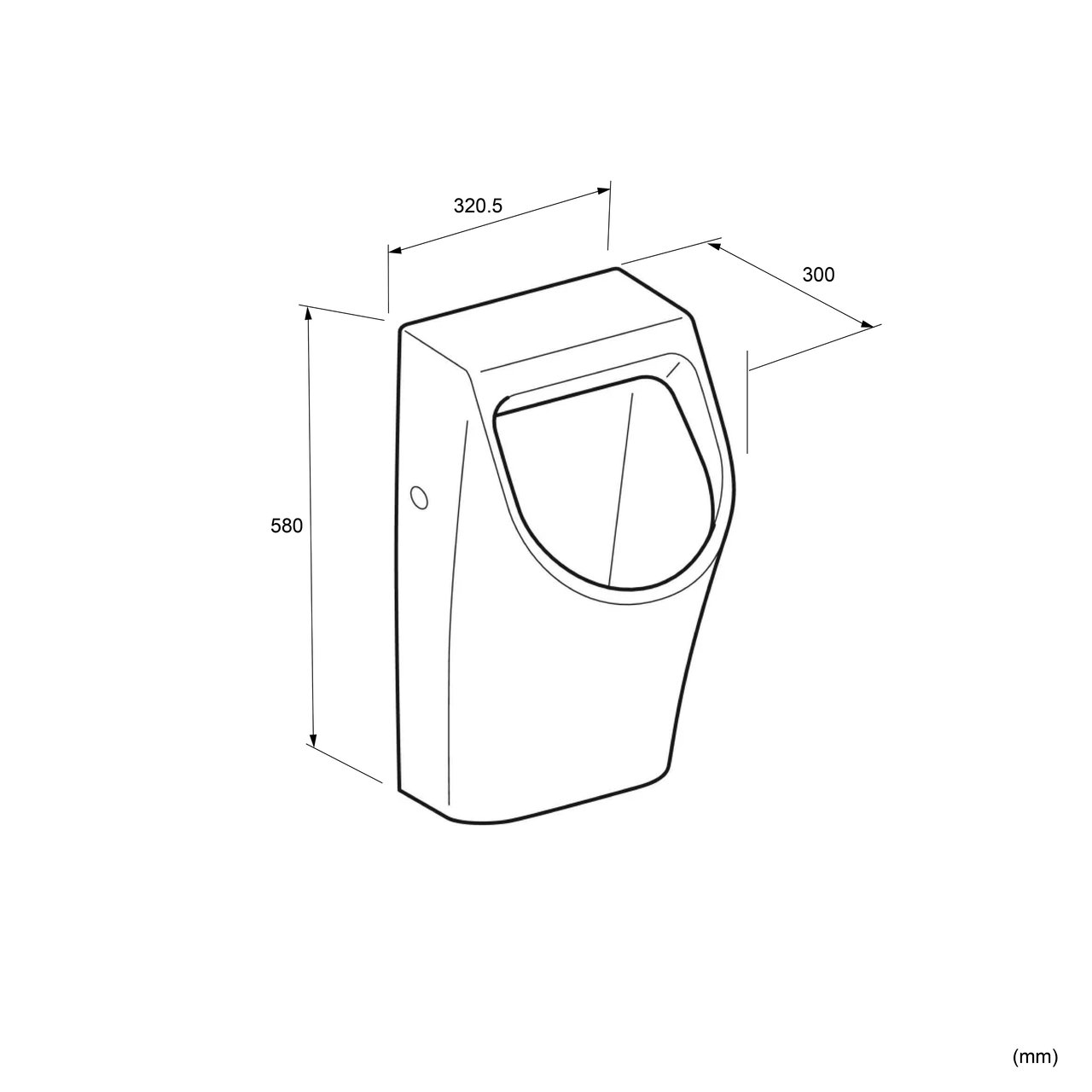 Ce modèle est équipé d'une alimentation et d'une évacuation à l'arrière, dissimulant ainsi les canalisations pour un aspect propre et ordonné. L'urinoir mesure 32,5 cm de large, 30 cm de profondeur et 58 cm de haut, et est livré avec une garantie de 8 ans.