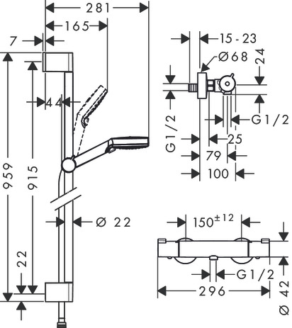 Type de robinet | Barre de douche avec pommeau de douche | |