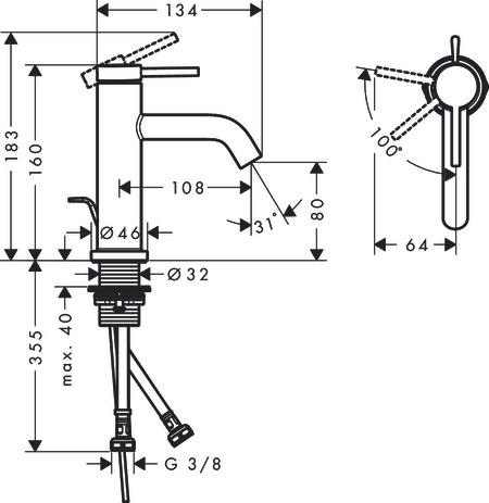 Bonde incluse | Oui, clapet avec commande par tige de traction | |