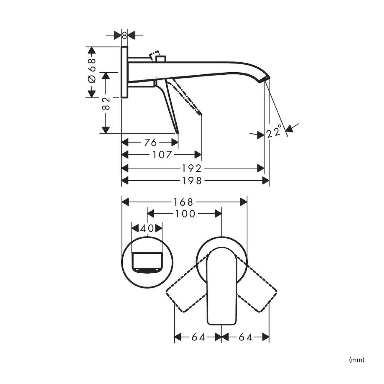 Longueur du trop-plein (voir dessin de dimension) | 192 mm | |