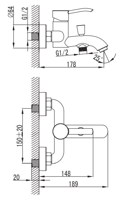 Type de robinet | Robinet de baignoire mural | |