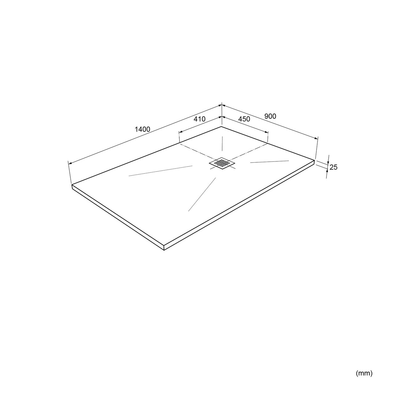 Ce receveur de douche mesure 90 cm de large sur 140 cm de long.
