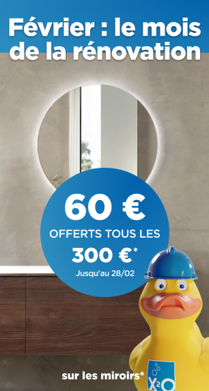Vous souhaitez acheter un miroir pour votre salle de bains ou vos toilettes ? Chez X2O, vous trouverez des miroirs de salle de bain, des armoires de toilette et des miroirs WC de différents styles et formes.
