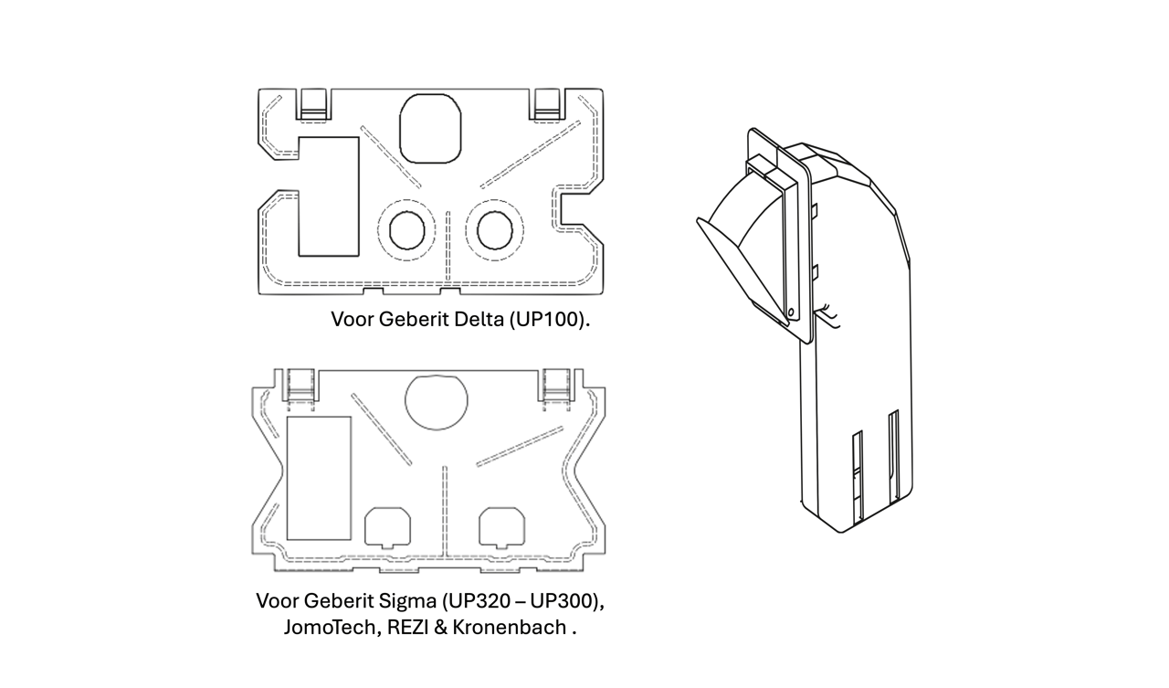 Compatible avec toutes les plaques de commande adaptées aux réservoirs encastrés Geberit UP100 et UP300, à l’exception des plaques Perola.