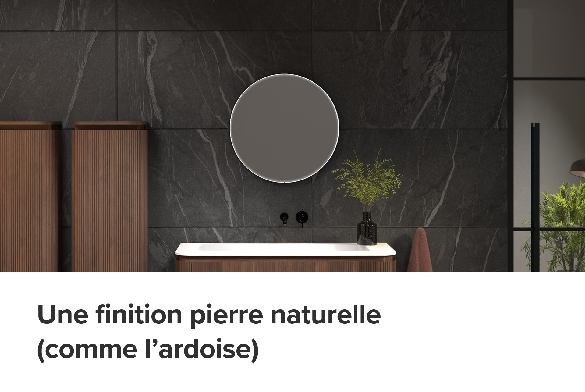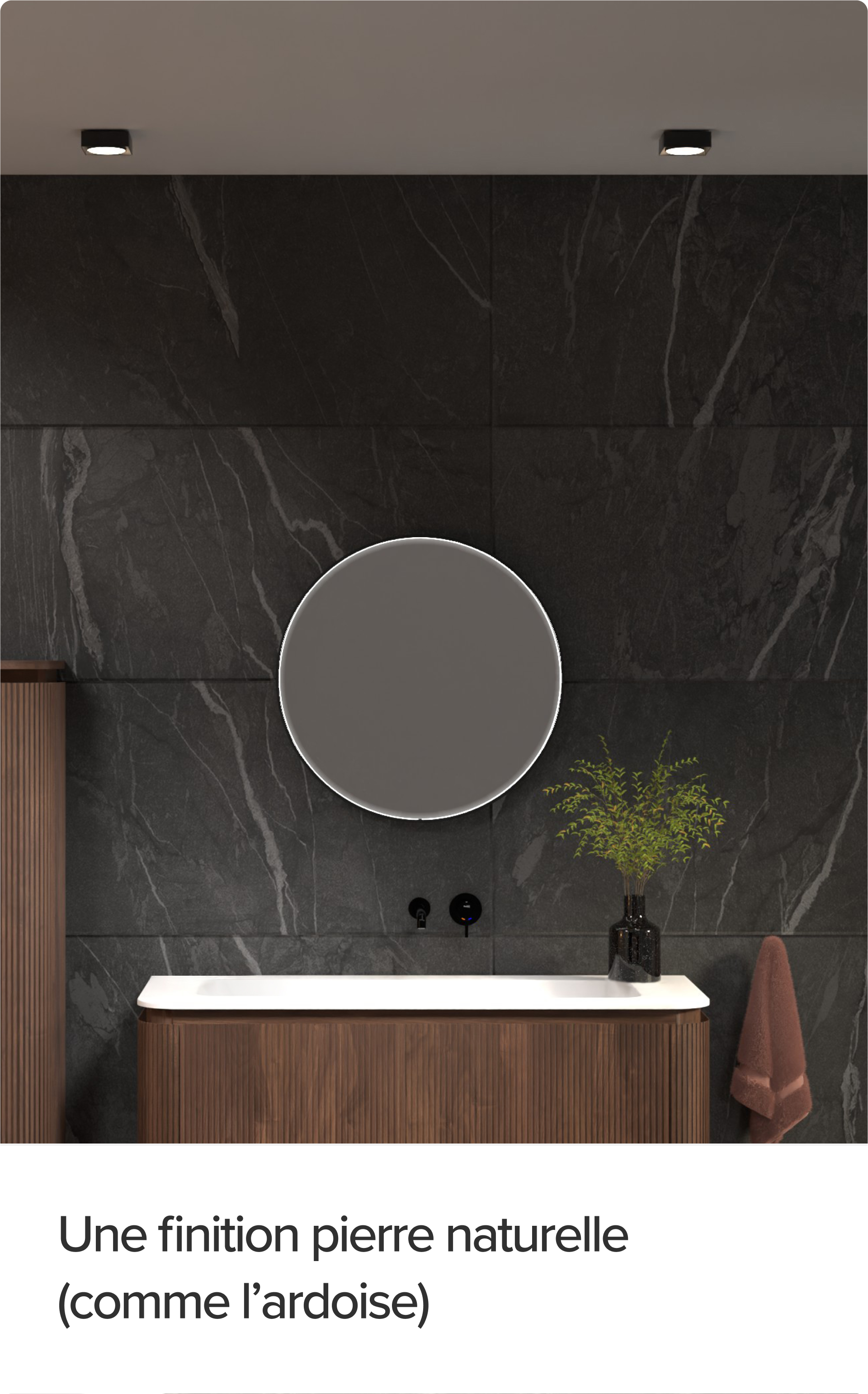 En plus de la couleur, le choix des matériaux pour votre meuble vasque, vos panneaux muraux de douche ou vos meubles est essentiel dans une salle de bains élégante. Optez pour des matériaux qui font vraiment la différence :