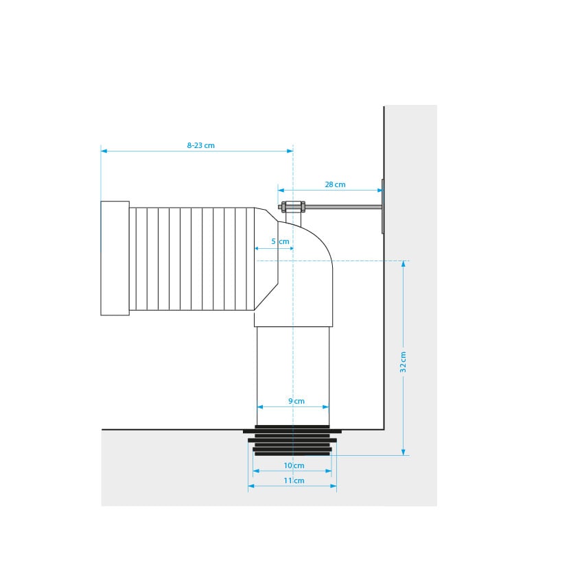 + Convient pour une distance entre le trou d'évacuation et le mur de 5 à 15 cm