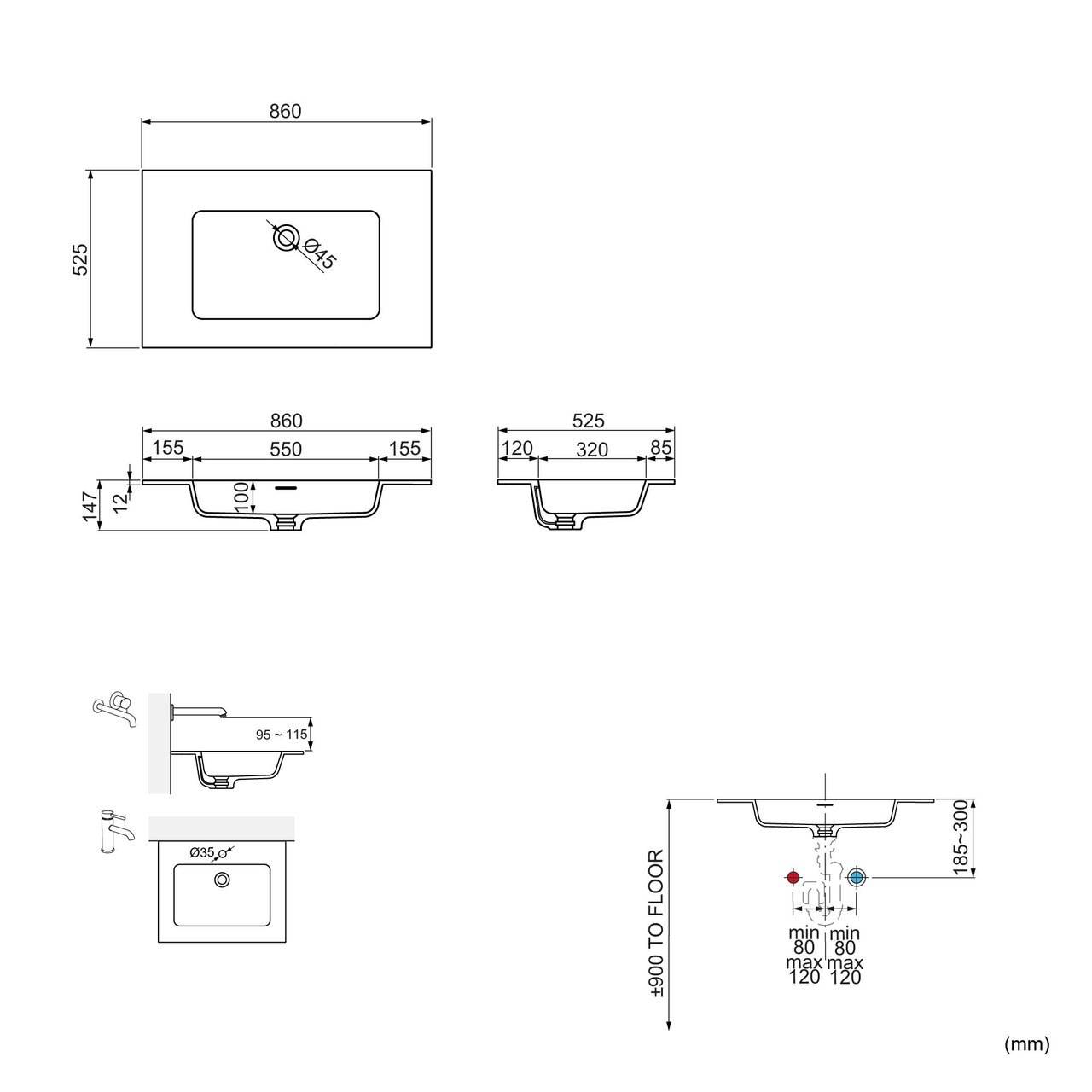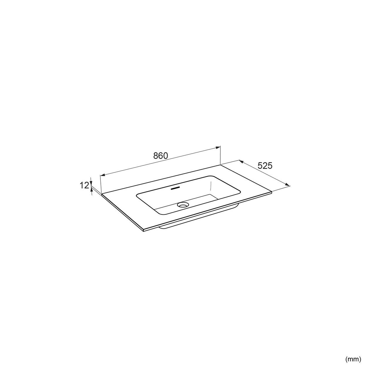 Ce plan vasque Solid Surface avec vasque intégrée mesure 85 cm de largeur, 52 cm de profondeur et 1,2 cm de hauteur de rebord. Grâce à sa finition élégante, ce plan vasque blanc mat s'intègrera dans toutes les salles de bains.