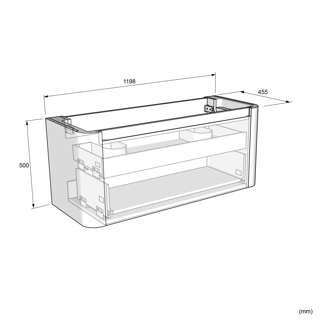 Ce meuble sous-vasque avec 2 tiroirs en MDF avec feuille PVC a une largeur de 120 cm, une hauteur de 50 cm et une profondeur de 46 cm. Avec sa finition chique, cette armoire suspendue en noyer s'intègrera dans n'importe quelle salle de bains.