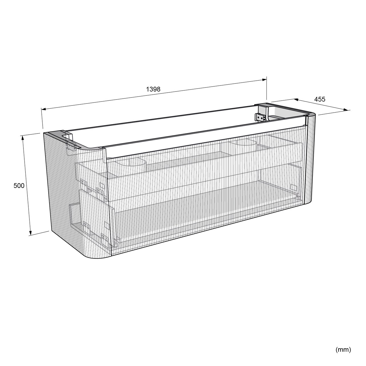 Ce meuble sous-vasque avec 2 tiroirs en MDF avec feuille PVC a une largeur de 140 cm, une hauteur de 50 cm et une profondeur de 46 cm. Avec sa finition chique, cette armoire suspendue en chêne brut s'intègrera dans n'importe quelle salle de bains.